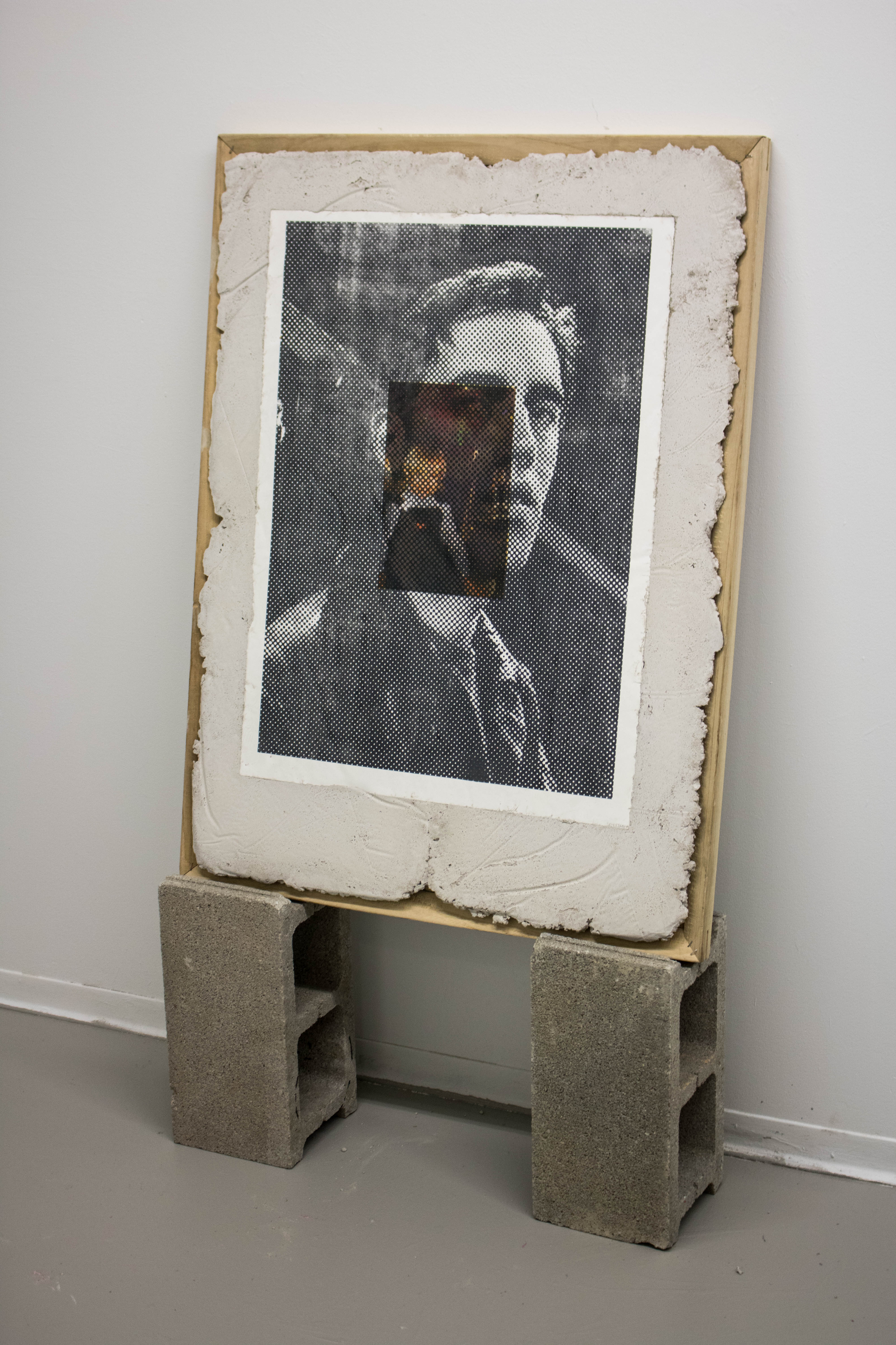 screenprint on paper ; mortar mix ; stretcher bars ; cinderblocks