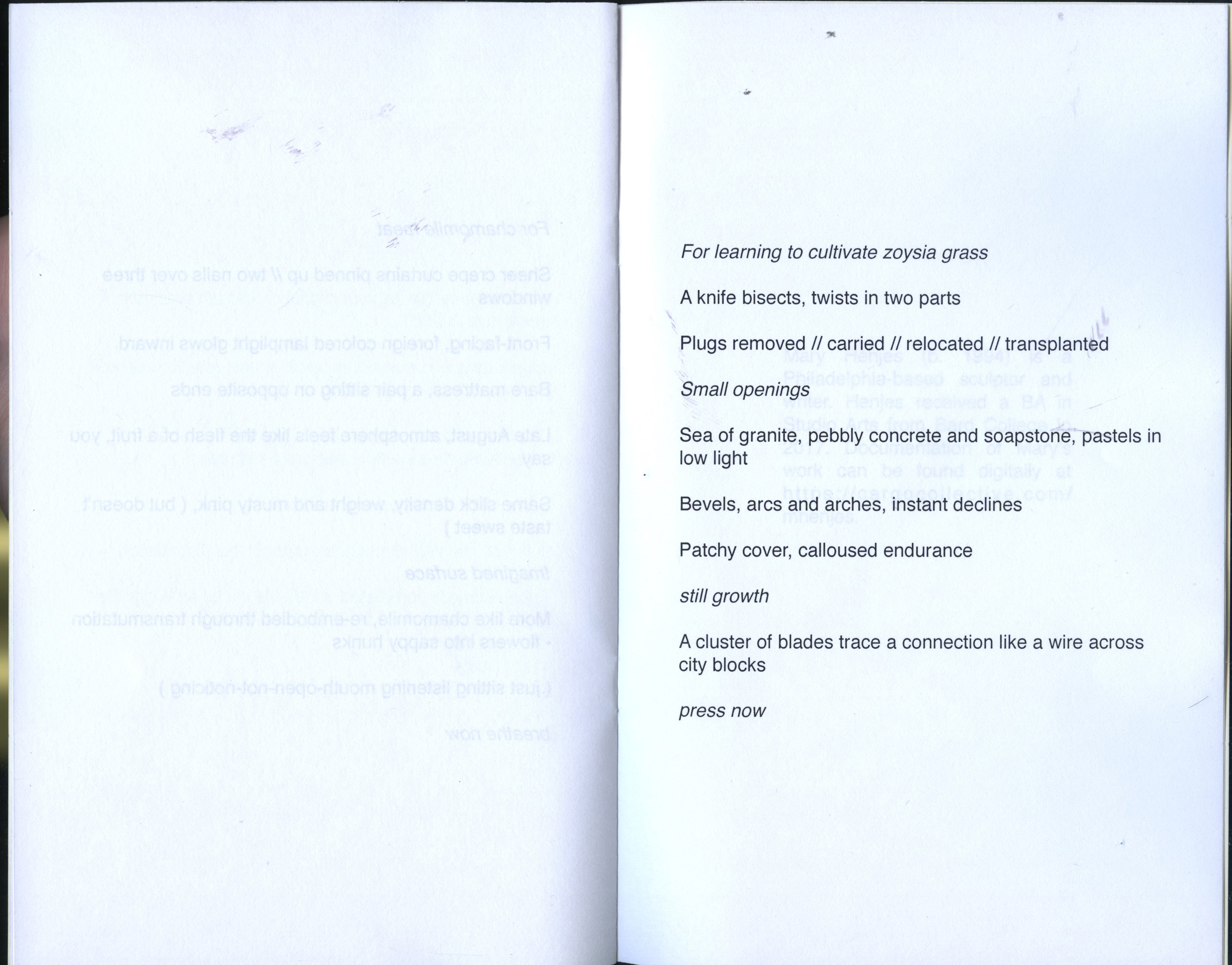 A series of poems fine tuned to a hauntingly personal voice which speaks of things in fragments and generalities. It truly paints a pictures of out of jointly simultaneous moments in time.