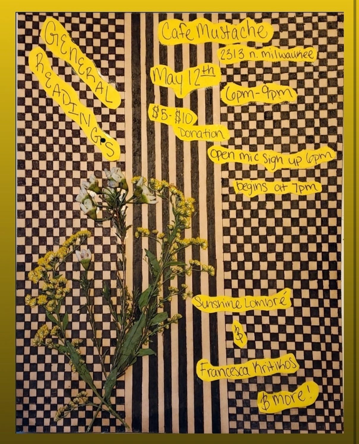 is a night dedicated to bringing the written world to life. Taking place once a month at Cafe Mustache, each event follows a formula of bringing together featured readers and creating space for the community to spend time with them. It has also taken this formula to support Book Releases, Lecture Performances, Fundraisers, and Anniversary events. If you would like to read at or work with this literary night reach out to: generalthingspress@gmail.com